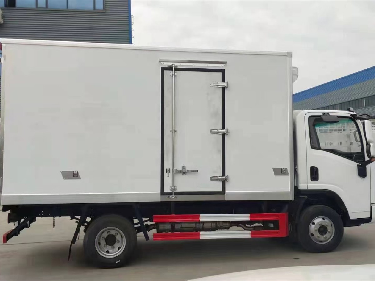 (2)廂板材質:內外壁板選用國內優質玻璃鋼(不吸光、隔熱性好、硬度強、抗氧化);中間保溫層為XPS擠塑聚笨板或聚氨酯;廂體厚度8CM。地板采用鋁花紋板,門邊條采用迷宮式橡膠密封條。