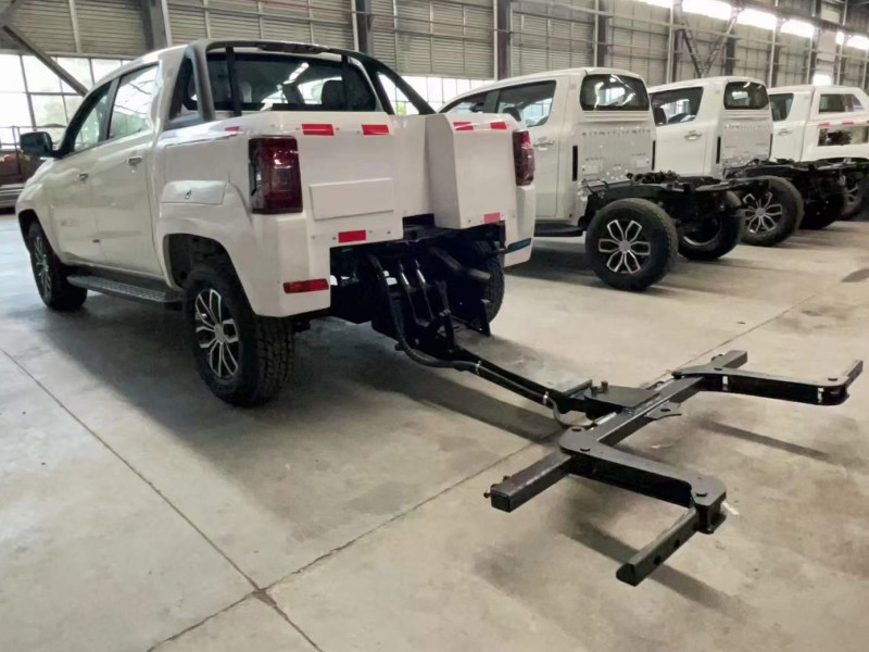 放下被拖車輛時,請降下托臀至后車完全落地后,再將抱胎放開收回,否則易導致油缸彎曲損壞! 最后將第3步中裝卸的螺母還原,再將長臂、托臂依次升起歸位,按下紅色按鈕關閉電源,皮卡清障車車即可離開。要想長時間高速拖行車輛,應選用高速拖行小跑車。(可單次行駛上百公里,請按國家有關規定安全時速行駛)。